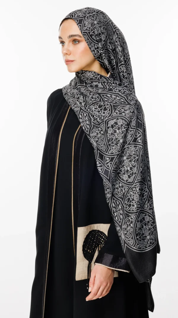 Henna Desen Çift Taraflı Şal Siyah-Siyah