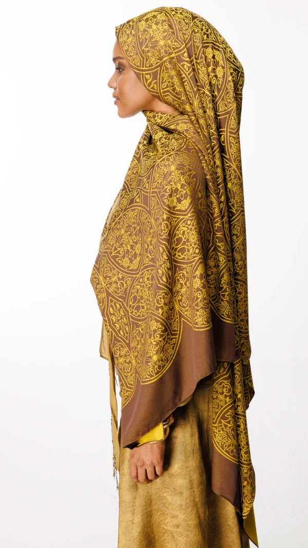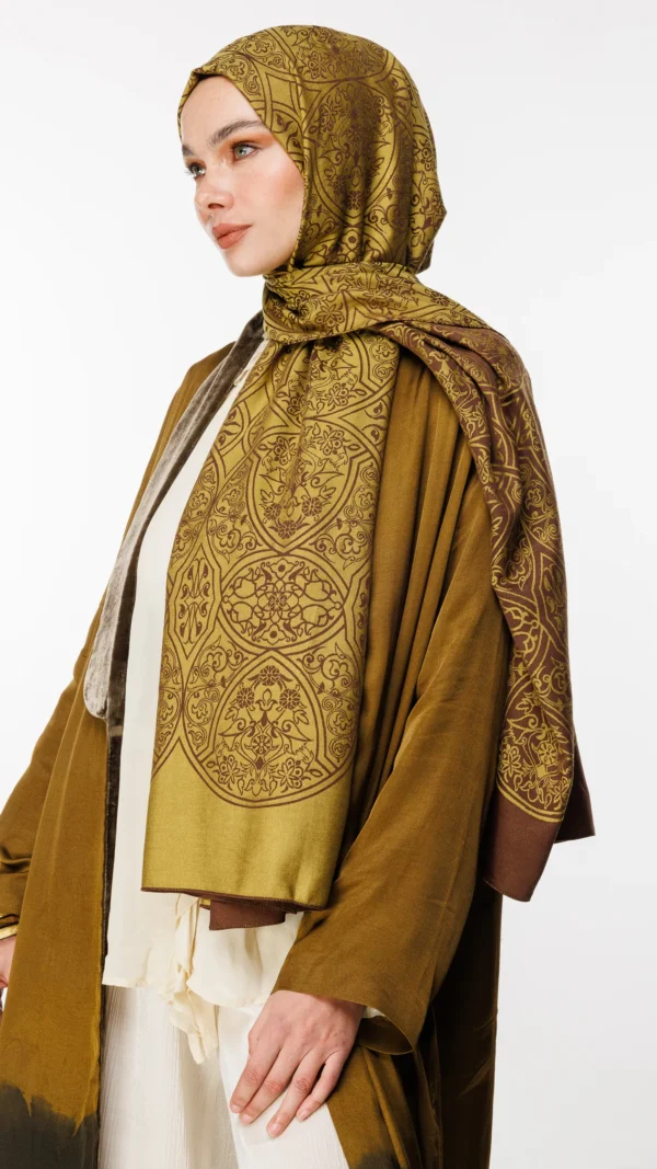 Henna Desen Çift Taraflı Şal Acı Kahve-Hardal
